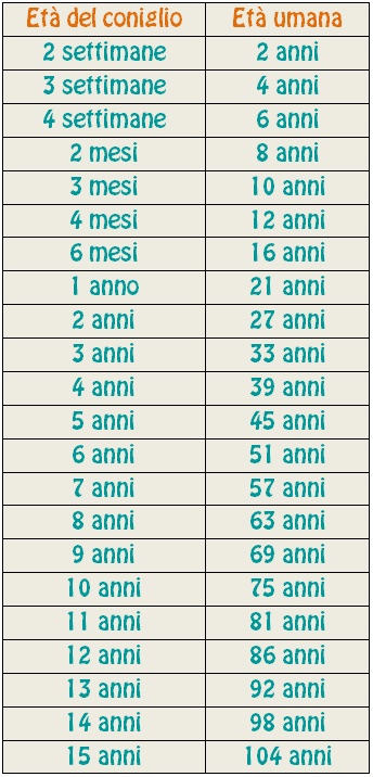 Mette a confronto l’età del tuo coniglio con quella umana e puoi vedere come 7 mesi corrispondano a circa 17-18 anni umani.